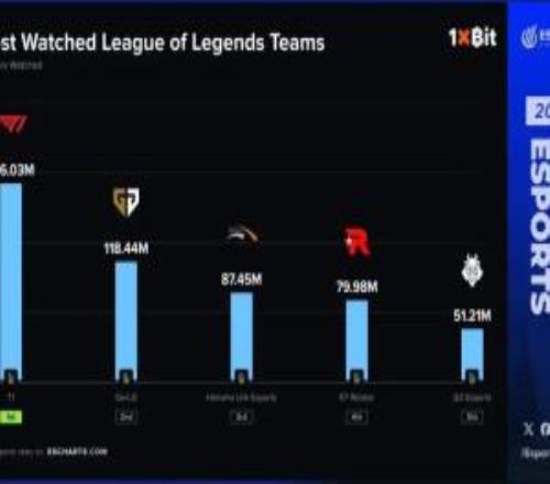 体育资讯1月10日称 今日外媒统计2025年度英雄联盟战队收视率排名(不包含大陆地区数据),具体如下: