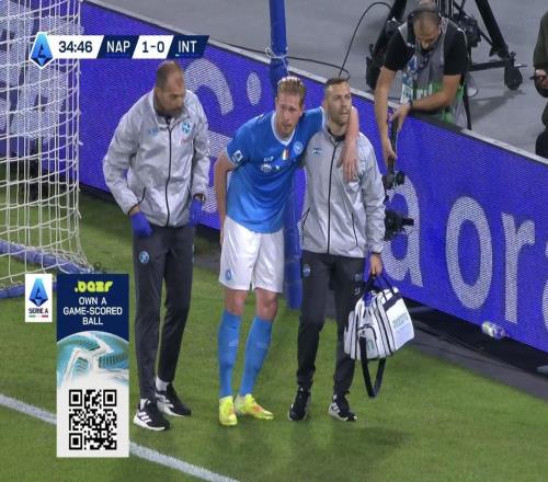 意甲第8轮主场迎战国际米兰的比赛中,那不勒斯中场德布劳内在第33分钟主罚点球破门,但随即因为受伤被替换下场。一个颇为不幸的巧合是,德布劳内总是会在对阵国米的比赛中伤退,他